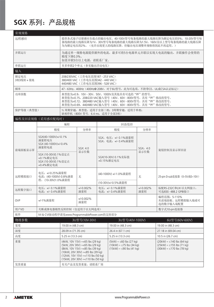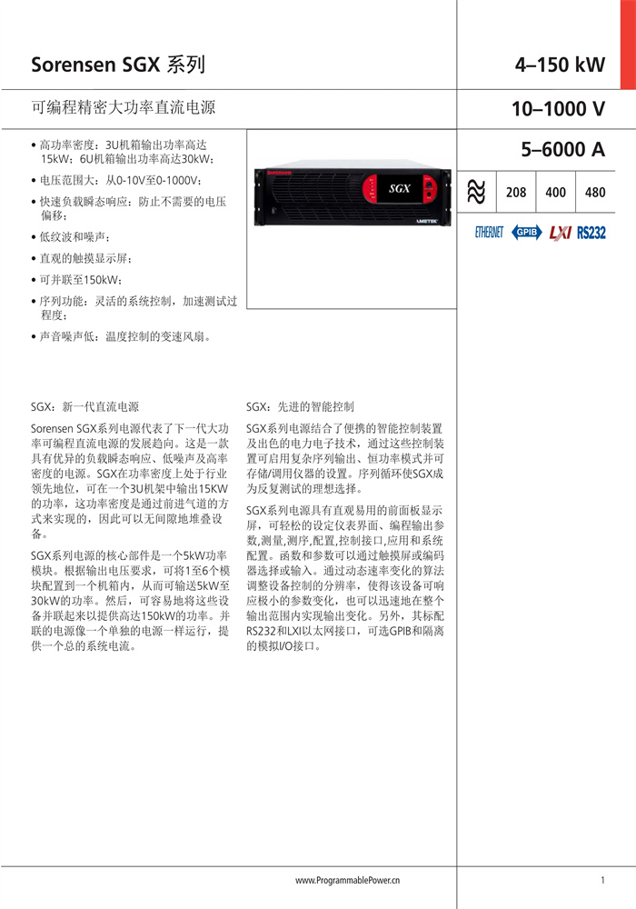 • Sorensen SGX 系列 可编程精密大功率直流电源