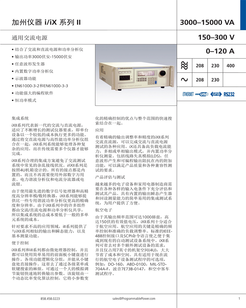 • 加州仪器 i/iX 系列 II  通用交流电源