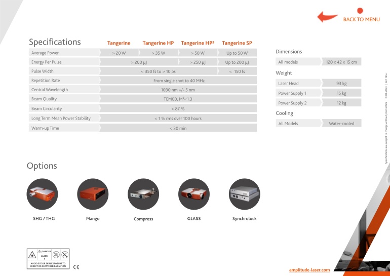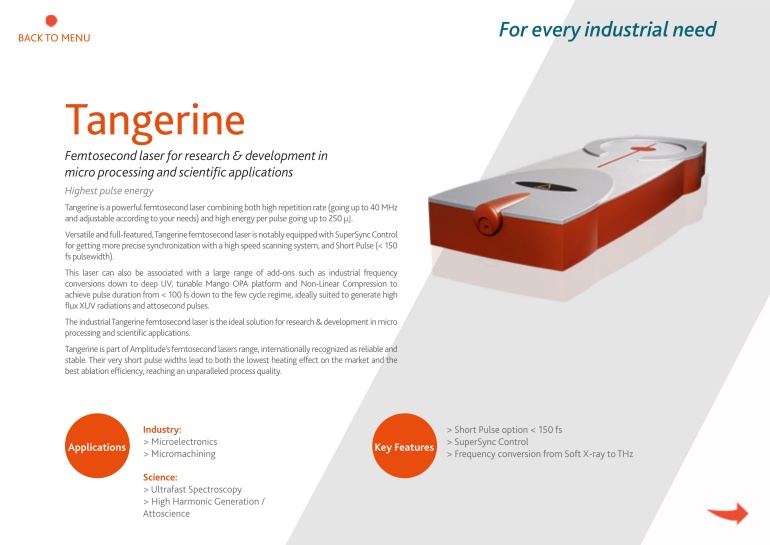 Tangerine是一种强大的飞秒激光器,它结合了高重复频率(高达40 MHz)和高达250uJ的高能量。