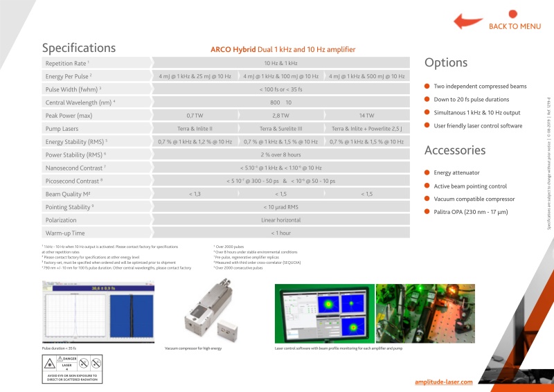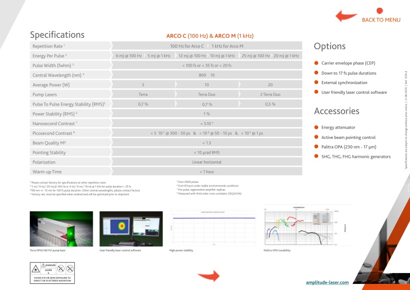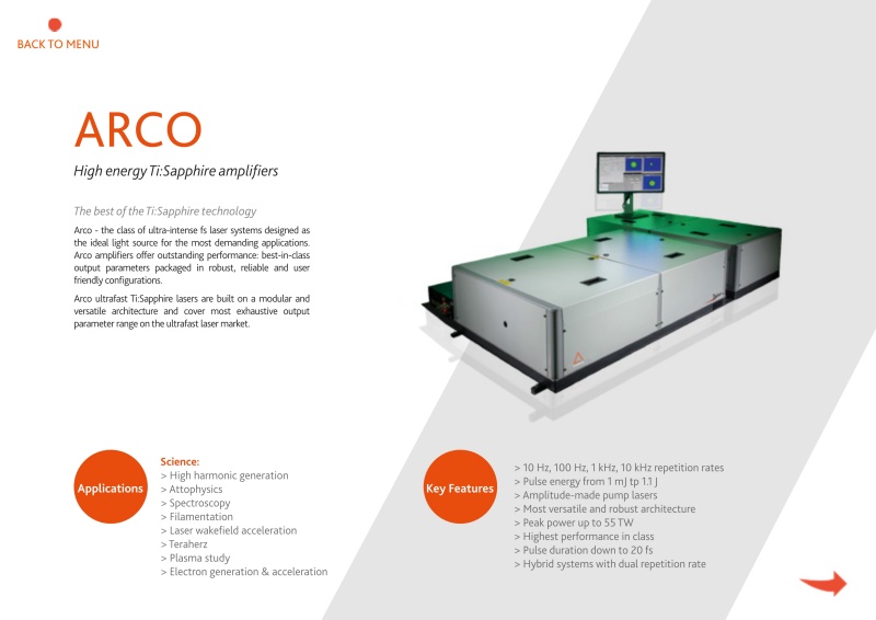 Arco-超高强度fs激光系统,是最苛刻应用的理想光源。Arco放大器提供卓越的性能:在强大、可靠和用户友好的配置中封装了同类最佳的输出参数。