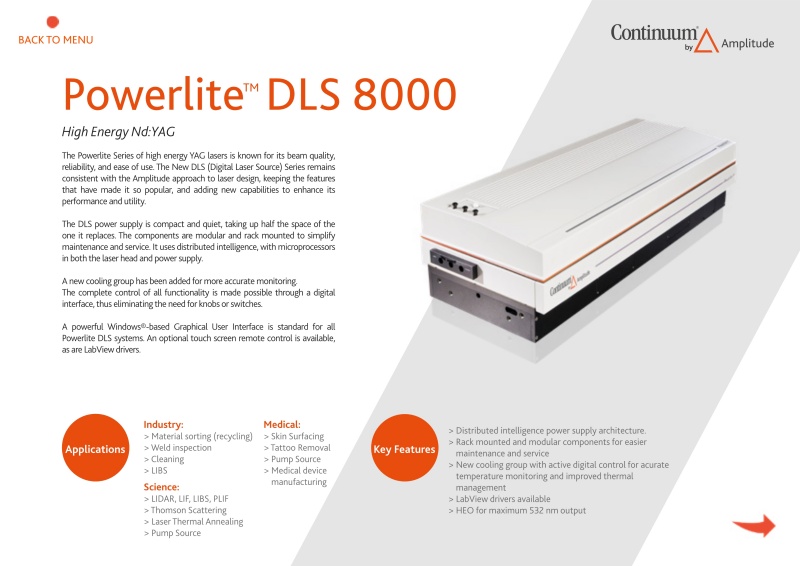 Powerlite系列高能YAG激光器以其光束质量、可靠性和易用性而闻名。新型数字激光源系列与振幅激光器的设计方法保持一致,保持了使其如此受欢迎的功能,并增加了新的功能,以提高其性能和实用性。
