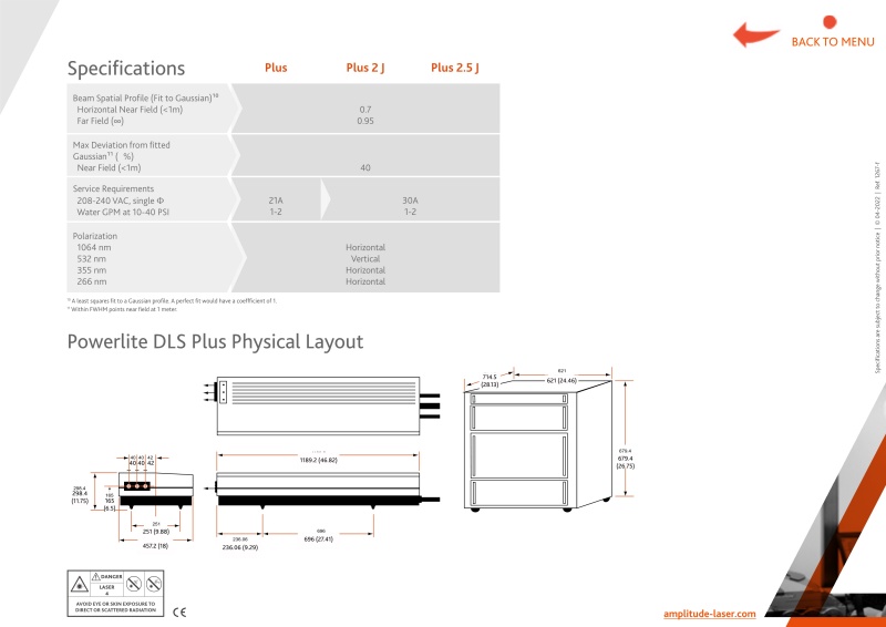 • 纳秒标准激光器 Powerlite’ DLS Plus